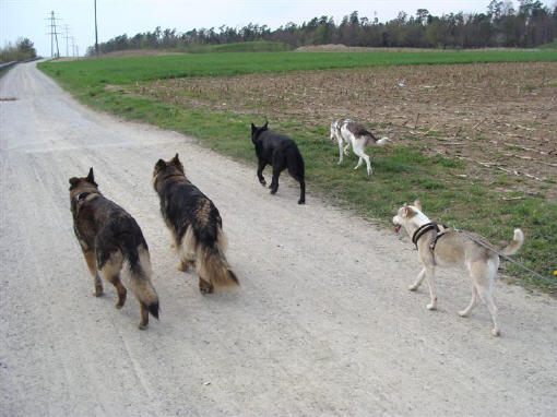 Spazieren mit Baco, Quennie, Cowboy und Tace